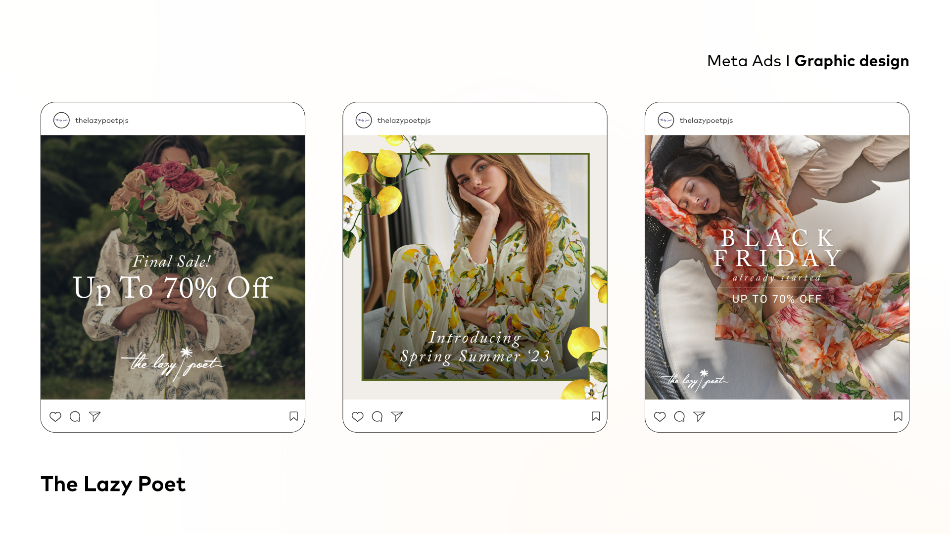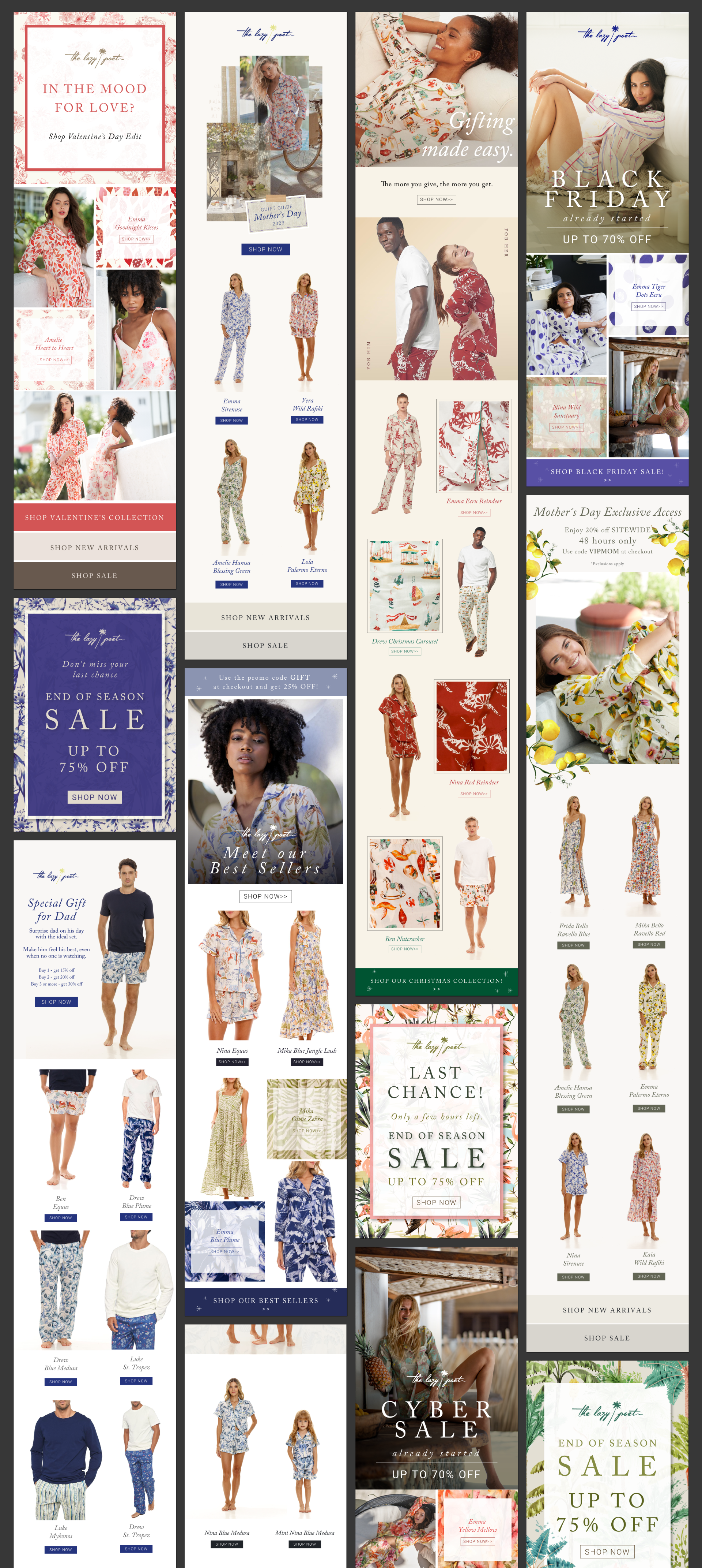 Graphic design for Colombian loungewear brand The Lazy Poet. Email marketing and ad campaigns