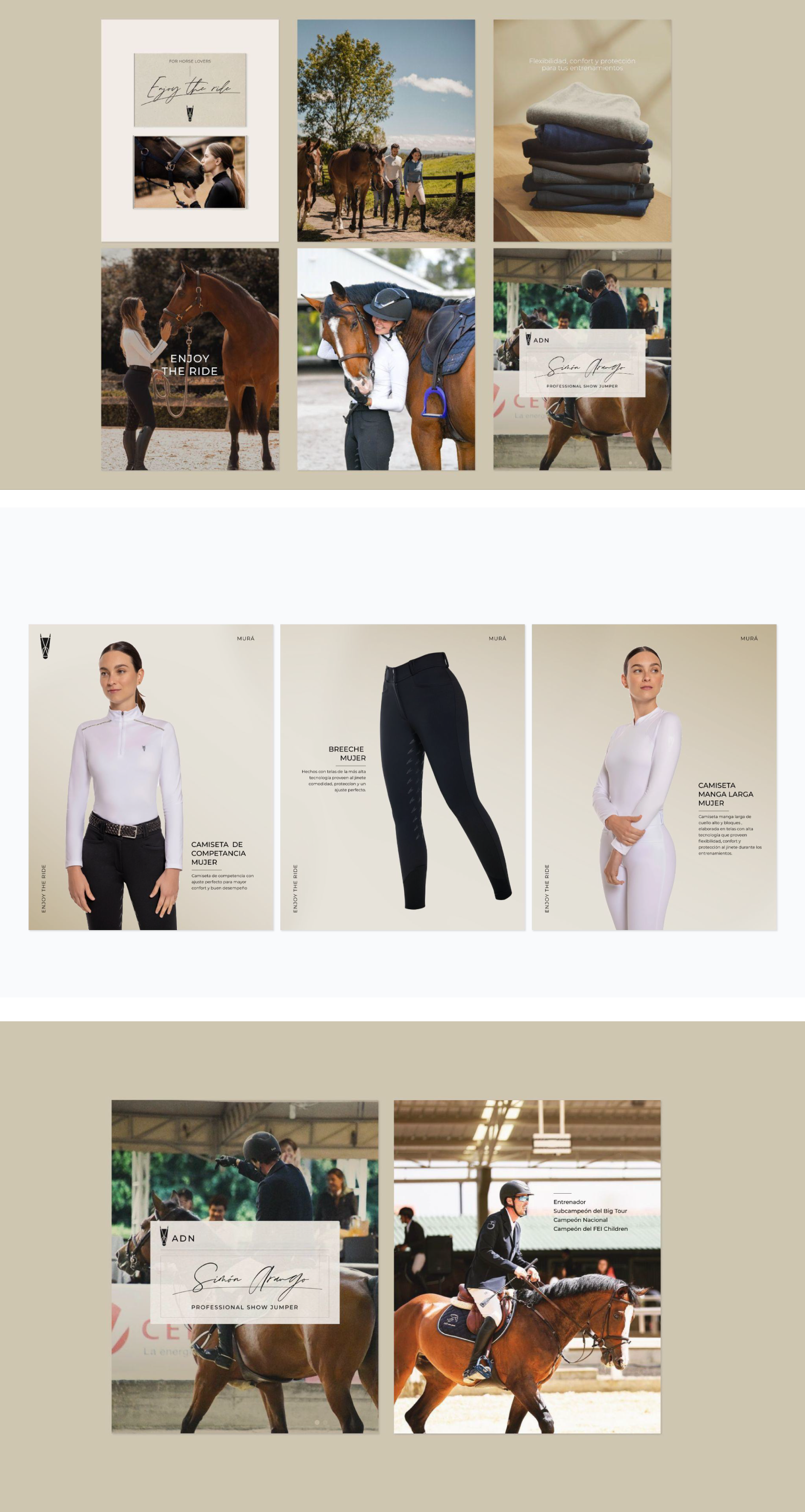 Graphic language and creative direction for the social media channels of Colombian equestrian brand Murá.