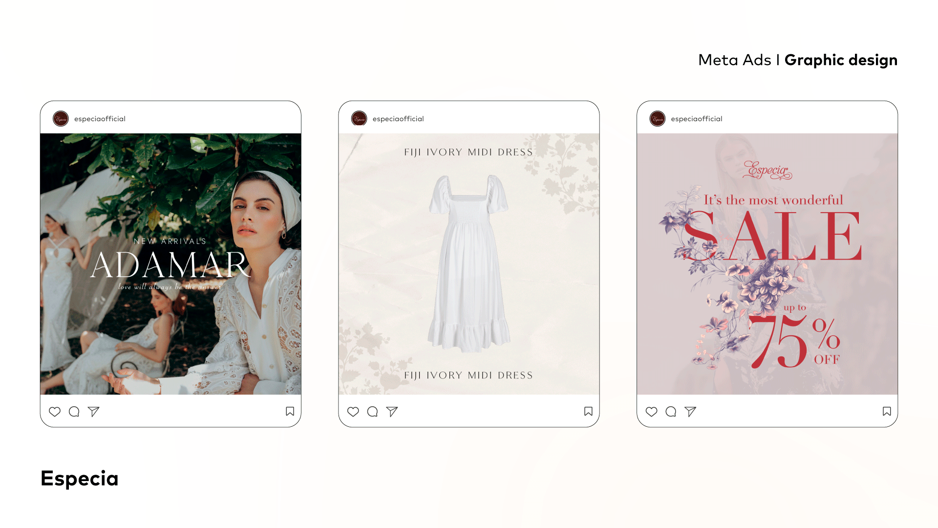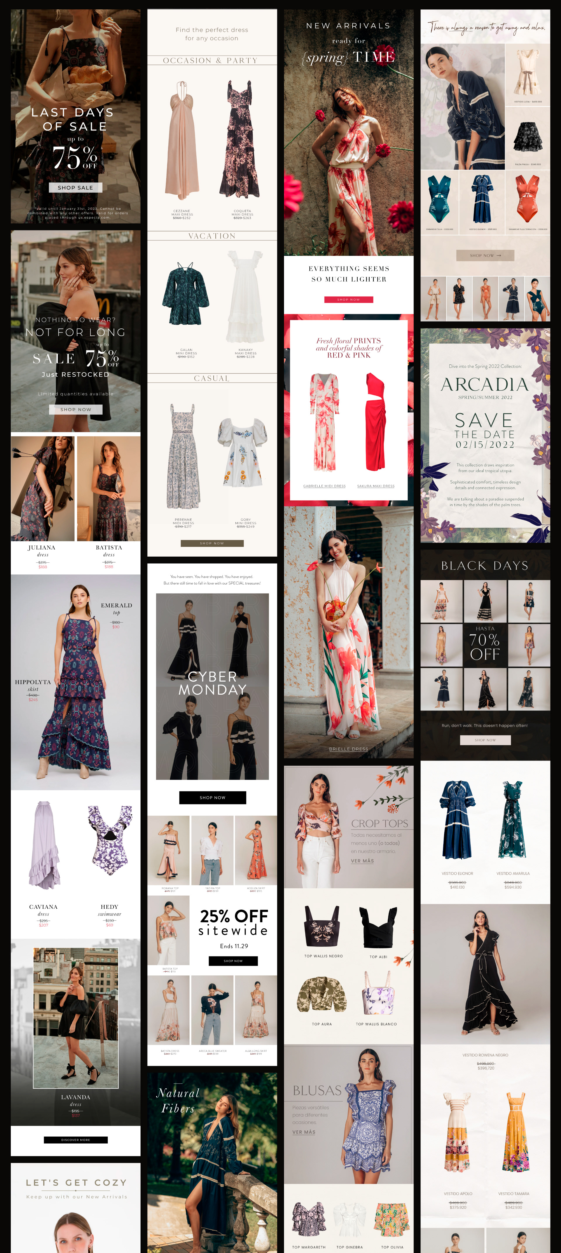 Graphic design for Colombian womenswear brand Especia. Email marketing and ad campaigns